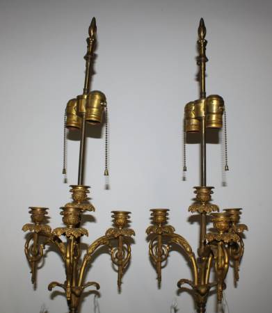 Antique Neoclassical Nymph Double Lamp Candelabra Pair, $450