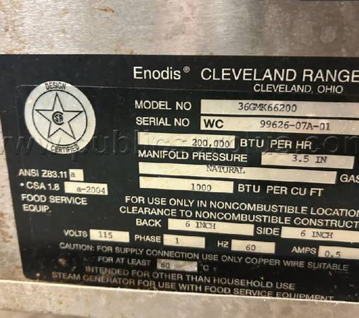 Cleveland Range - Double Table top Steamer - USED, but in good working condition. (2) six gallon kettles; has double pantry faucet, sink and drain. 120 V; single phase - natural gas. 200,000 BTU/hr....