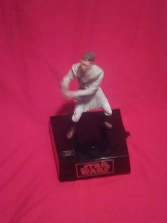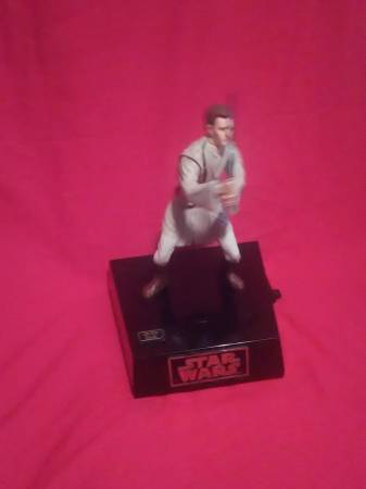 Obi-Wan Kenobi and a missing one battery casing on the back. Their are on and off switches on the bottom. Action figures are also banks with coin slots on top to store your spare change. Very hard to find this type of set. Again it is made from the company of Hasbro.