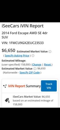 2014 Ford Escape SE. All wheel drive. 1.6 liter Ecoboost four cylinder engine. Mileage is 158K. Two owners. Accident free title. Both engine and transmission replaced by Ford dealer around 105k miles. Clean vehicle. Great fuel economy over 25 miles per gallon. Good tires. Weathertech floor mats throughout entire vehicle which adds a very nice touch. Starts runs and drives great. No issues problems or surprises. Get in it and go! Recent PA inspection good until July 2026. This vehicle is being sold on consignment for our customer. MSRP is $6650. Asking price is $5995. Come check it out. Take it for a ride. It's great. Text for more information. Thanks for looking. Have an amazing day!