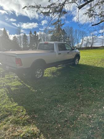 Up for sale is a 2014 ram 2500 pick up truck. This truck has a crew cab and has the outdoorsman package. It has an 8 foot bed, 4 x 4 automatic with a 6.7 Cummings turbo diesel. It has a spray in bed liner Power rear window. It also has a class five trailer hitch and is set up for gooseneck and fifth wheel using the puck system. This truck was never abused, never modified or deleted. It has 48,000 + miles on it and has always been garage except for the last year. The frame is perfect. There is no rot on the frame at all. The truck is very well under coated and was always cleaned when it was wet or snowing out. The truck was not used that much in the last year or two. I feel it should go to somebody else Who can use it and enjoy it. The truck is going to need tires soon and it’s going to need brakes soon. It has its original brakes on there. I do have complete brakes for this vehicle. The batteries were just replaced last year and they were the original ones that I pulled out. I’ve always maintain this truck changed the oils regularly whether it needed it or not I have always use synthetic oil in this truck. The truck has a couple of scratches on it and a scuff on the rear bumper and chips on the front bumper . It has a tunnel cover and a lot of options. Way too many for me to list. I have not modified this truck with its emissions or deleted it in anyway. Sold as is where is with no implied warranties or guarantees. The price is firm and non-negotiable. Feel free to contact me with any information or questions you may have. Shipping and delivery of the vehicle is the responsibility of the new owner. I will assist in anyway I can. The truck does have a clean title.