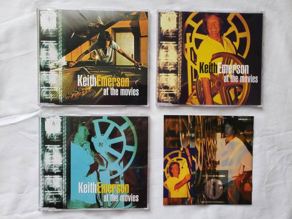 For sale is the 3-CD import box set compilation titled "At the Movies" by Keith Emerson, released in 2005 in Europe by Castle Music UK. The set includes a variety of tracks showcasing Keith Emerson's work in the realm of movie soundtracks for U.S., Italian, and Japanese movies.