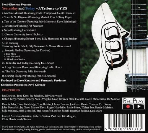For sale is the CD "Yesterday And Today - A 50th Anniversary Tribute To Yes". "Yesterday and Today" is a 13 track tribute album to celebrate the 50th Anniversary of the legendary prog rock band Yes. Six members of Curved Air appear on a newly recorded full band version of "Soon". The current bass player in Yes, Billy Sherwood re-records Chris Squire's signature bass track, "The Fish". Steve Hackett performs "Cinema"; and current lead singer Jon Davison performs on an acoustic medley; and much more. The CD was released in 2018.
