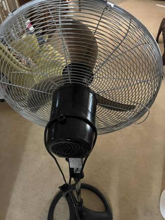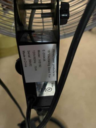 Black 'Windchime' fan, speeds, oscillating type, telescopic height slight damage to plastic sleeve where the top portion inserts into the shaft, currently taped! sorry fan is is perfect working...