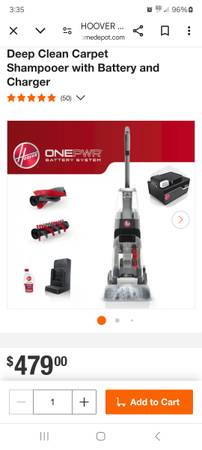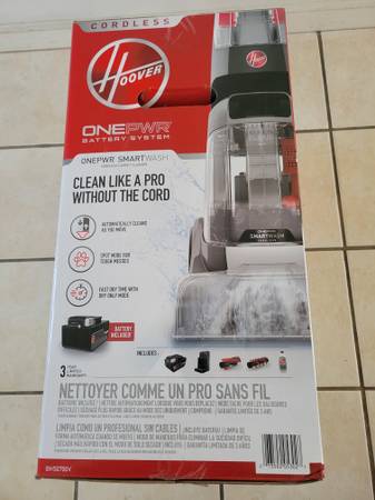 Hoover cordless carpet cleaner brand new in the box. Model number bh50700v. Includes battery and charger. Cordless very convenient. Easy enough to look online for any more information. Pick up in Milford PA 18337. Price is firm.