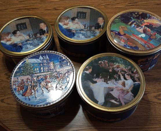 5 Collectible Christmas Metal Cookie Tins - general for sale - by...