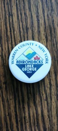 2 Vintage Lake George, Warren County, New York Pins. 1.5" diameter. Never worn.
