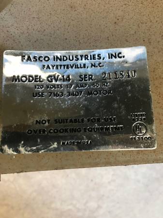 14" ventilation fan, mounts on roof joists near attic vent, or many other uses. This fan is an older model that was installed and never used. 120v. It seems to run well and is in good condition. Retrofit for various applications. Price reduced. Call/text