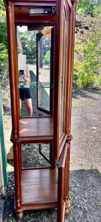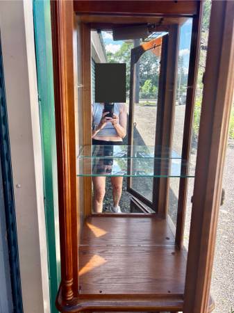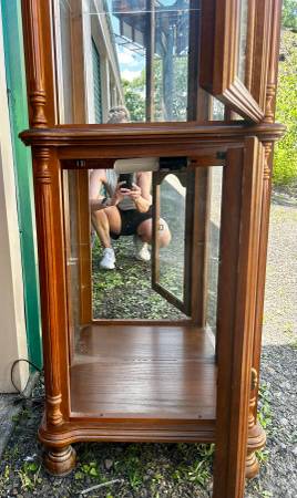 Perfect for displaying your dishes, china, crystal, carnival glass collectibles, sports memorabilia, dolls or anything else your heart desires! Comes with one glass shelf, but can accommodate three. Very good condition with no deep gouges or scratches. Front glass is removable on upper door and lower door. Local pick up/cash only. Carbondale. Cabinet it’s approximately 6 feet tall. You will need a van or truck.