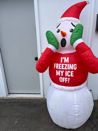 Inflatables large snowflakes flakes. Wire lighted items. Holiday stuff for outside and inside small white Christmas tree ornaments ceramic church garden center gas station. Stuff items and DVDs