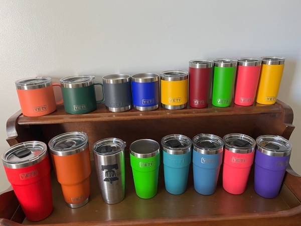 Yeti stuff tumblers mugs. Brand new 24 roadie Bimini pink, new green yeti bucket