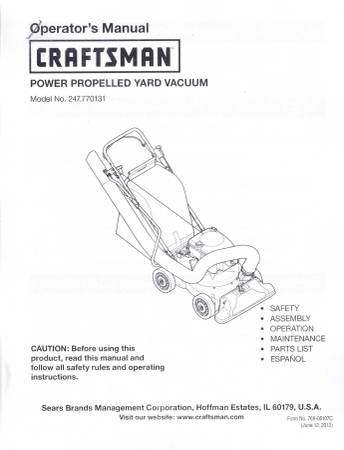Craftsman 675 Propelled leaf yard vacuum grass cutter mulcher...