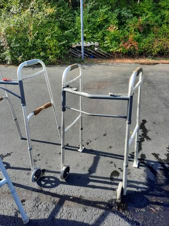 adjustable walker with wheels. Two available. buy one for $20 or both for $30 excellent condition. with button release foldable.