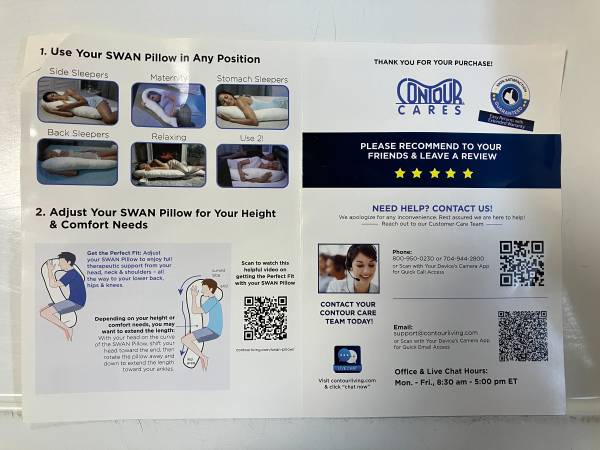 Contour Swan Original Body Pillow | Cozy, Huggable Pillow for Back, Hip, Knee, and Leg Relief | Total Comfort and Support for Side Sleepers | As Seen on TV Original Retail price - $49.99