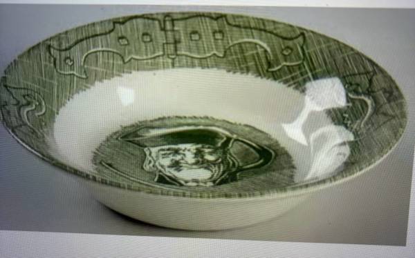 Old Curiosity Shop (green) Made by Royal Theme: Charles Pickens Manufactured in 1950 Mid 20th century era (1951-1969) *20 dinner plates 10 1/8” *18 flat cups 2” *20 saucers 6 1/8” *sugar bowl &...
