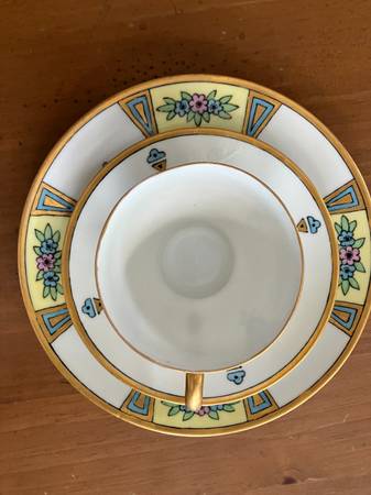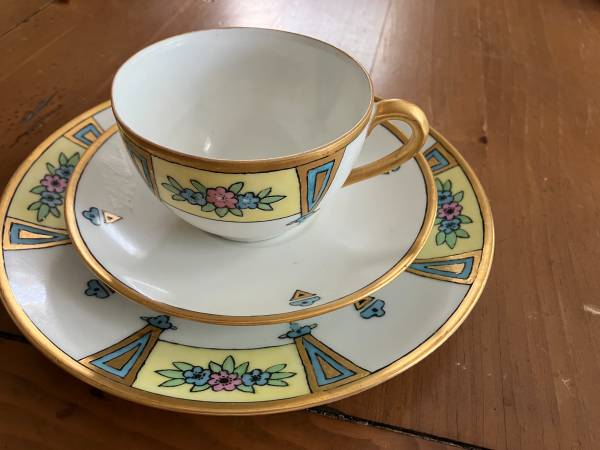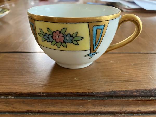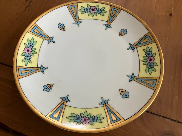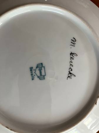 These lovely, antique fine Bavarian china (pre-war) dishes were hand-painted by a distant relative in the 1920's. They have a distinctive Art Deco feel and look and are so fine they are almost transparent when held up to the light. There are 11 luncheon plates, cups and saucers - perfect - no chips or cracks.