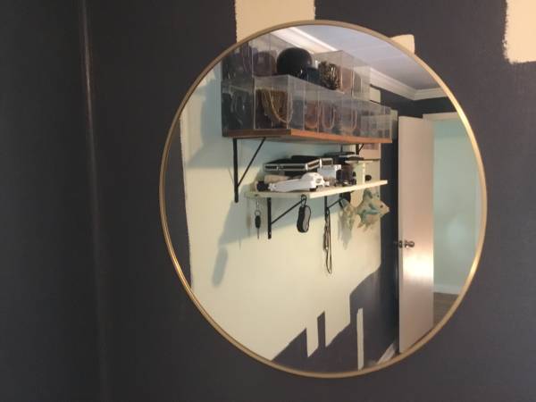 For sale one round mirror with gold edge . Size 28 inches wide.