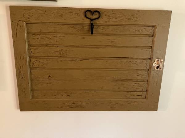 A decorative wall mount for photos and seasonal items.