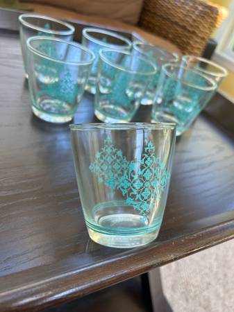 Retro 1960-1970s glassware, used items: - 2 glass pitchers/coffee carafes (one is corning coffee server) with 1970s styling and deco, approx 16-24 oz, $9 each, both for $15. - Off white milk glass...