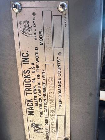 2000 MACK RD ROLLOFF TRUCK - TOWN OWNED - TRADE INS WELCOME - - YEAR: 2000 - MAKE: MACK - MODEL: RD - MILES: ORIGINAL 320,000 - 350 HP - 8 SPEED - 58K REARS - 20 PUSHER AXLE - 18 FRONTS - 75K LBS...