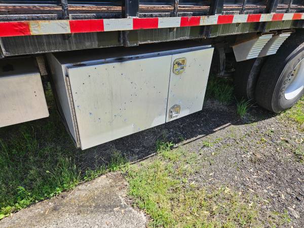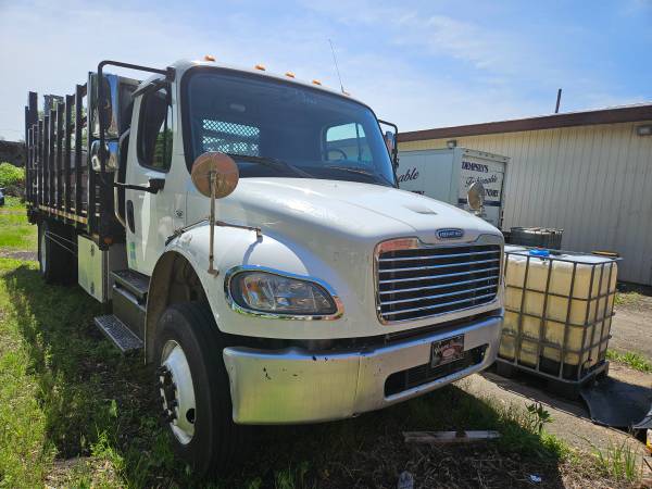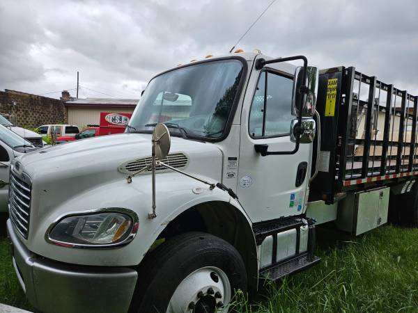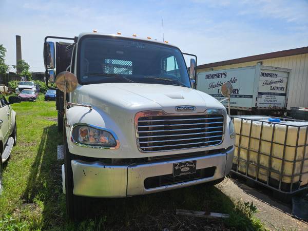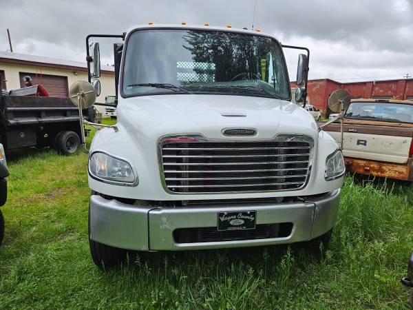 Just off lease from full maintenance lease program, this 2013 Freightliner Business Class M2 106 has an all steel 18FT diamond plate body with high end self leveling aluminum platform lift gate. Powered by a Cummins B6.7 325 horsepower engine, Allison 3000 RDS automatic transmission, 12,000# front axle, 21,000# rear axle, 33,000# GVWR, can be de-rated to non CDL 26,000# if desired, 4.78 ratio, 216" wheelbase, low low 113,893 miles, tool boxes, disc brakes, exhaust brake, power windows, power door locks, air suspension with dump valve, heated mirrors, plus so much more!!! Financing available!!