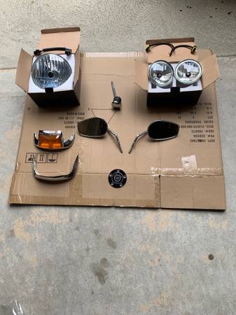 Headlight, passing lamps, mirrors, oil dipstick, front fender trim. Make a reasonable offer.
