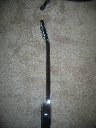No name hardshell case.Fits Les Paul,SG,Telecaster &Teisco style short horn strats.Smooth black tolex outside over HD wood construction.Double black piping top & bottom w/black thread.Pleather/hard plastic handle well preserved.Gold hardware w/HD latches & clasps.9 metal bumpers.Well preserved black fur inside is 3/4" padding all around w/raised bottom & top body padding inside.Lid has a raised top to accommodate a raised top guitar like LP.All very well preserved w/some lite oxidation on some hardware.42"long X 5"deep X 15"wide bottom bout.Full size LP,SG & Tele fit snug & 3/4 short horns fit w/a bit of spare room but snug.Might fit a small semi hollow body. 35.00