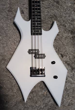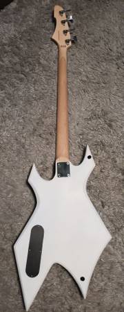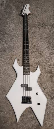 Used Harley Benton warlock bass in matte white. Tested and working like new. It has barely any wear and sounds similar to a fender p bass. Set up for B E A D tuning, string gauges 65 85 105 125