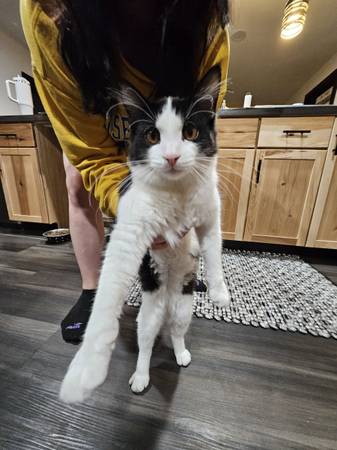 Free to good home ; very very friendly. Will nibble on your face thinking your his mother.