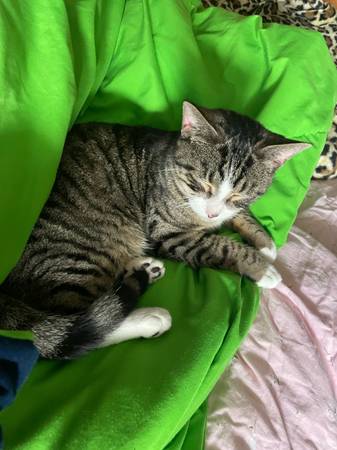 I am looking to rehome my sweet cat. He is around 4 years old, common household cat, he has a beautiful coat and eyes, he’s healthy, and very affectionate. He is litter-box trained and does well indoors and with other animals.