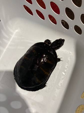 Picture 7: Male unknown(possibly western painted?) turtle: about 13 years old, he is a rescue and his growth is stunted, around 5-6 inches in length will not grow further $50