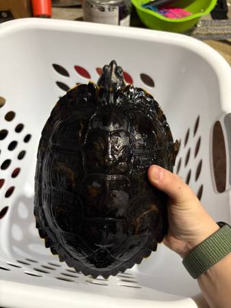 Pictures 5 and 6: Male western painted turtle: 6 years old, around 9 inches in length, most active of the group, will come out of shell when held $60