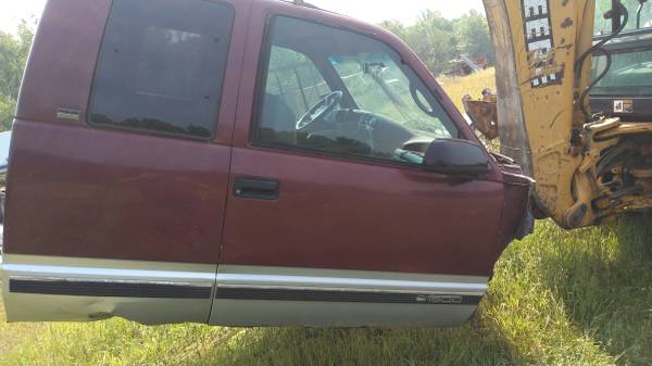 I HAVE A 1996 CHEVY 1500 , 4X4 EXTENDED CAB FOR SALE , THE TRUCK HAD A 8 FOOT BOX ON IT . THE CAB HAS SOME RUST ON THE ROCKER . THE INSIDE OF THE CAB IS MISSING THE FRONT AND REAR SEAT , OTHERWISE COMPLETE . THE DOORS COME WITH IT AND ARE COMPLETE , THE FLOORS ARE SOLID , ALL GLASS IS GOOD AND I HAVE A CLEAN TITLE . $400.00 . THE RADIATOR $ 90.00 , THE RADIATOR SUPPORT $80.00. THE COMPETE EXHAUST SYSTEM $300.00 . THE FRONT DRIVE SHAFT $ 125.00 , THE REAR DRIVE SHAFT $125.00 . THE TRAILER HITCH $60.00 . EMAIL OR CALL