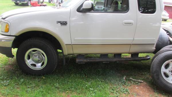 hello here i have this trk for parts. no bed! wheels are aluminum for sale and any body/interior parts . note the front passenger fender is there on the back off the cab also passenger side door panel is inside trk..email me with for your parts of interest.