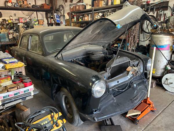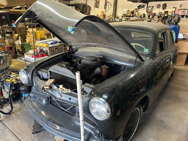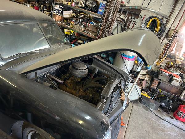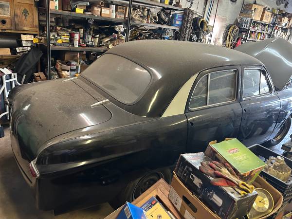 1950 FORD SEDAN CAR BOUGHT THIS CAR IN 1990 FROM ORIGINAL OWNER WHO HAD IT PARKED SINCE 1968 AND I HAD THE ENGINE REBUILT AND REPAINTED THE CAR BLACK, IT HAS ALWAYS BEEN IN A GARAGE, THE BUMPERS AND THE TRIM AND THE INTERIOR WERE REMOVED AT THAT TIME TO RESTORE IT, BUT IT NEVER HAPPENED, ALL PARTS ARE INCLUDED WITH SALE, THE FORD STARTS AND WILL DRIVE ONTO YOUR TRAILER. ALSO INCLUDED IS A COMPLETE WHOLE PARTS CAR IF YOU WANT TO TAKE IT WITH YOU .