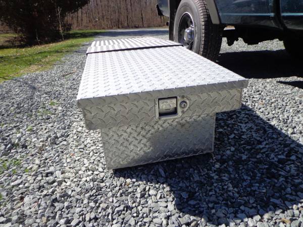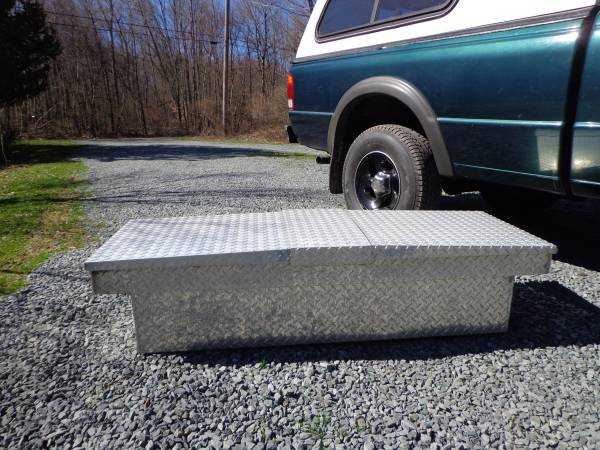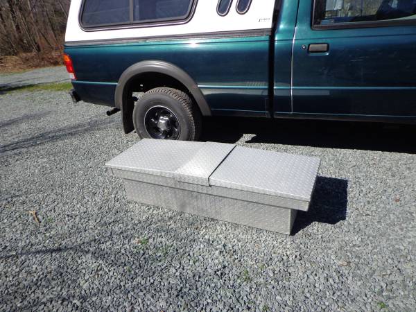 Nice aluminum tool box, fits most mid-sized trucks. Removed from my 1998 Ford Ranger. Has two top access doors. Top measures 61" long, 21" deep, 16"wide. Bottom Measures 52" long, 17" wide.