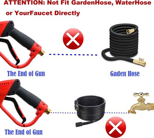 If hose has M22 14mm fitting with 14mm inside diameter, please connect to hose directly. If hose has M22 15mm fitting with 15mm inside diameter, please connect the brass coupler to gun and hose.
